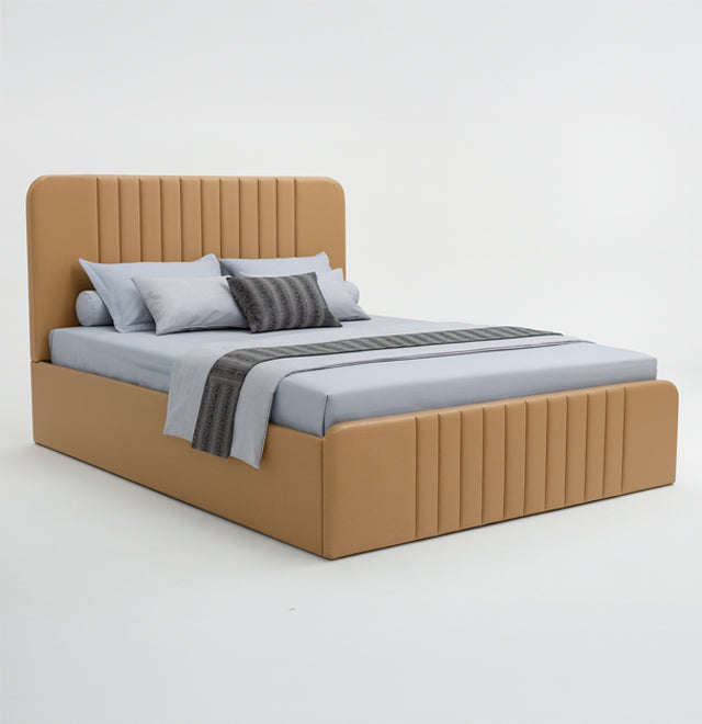 The Konverto Kiora Bed combines elegance and comfort with a premium upholstered headboard. Built with a durable Plywood/HDF structure and Prelam MDF internals, it ensures long-lasting strength and stability. Finished with DekorUp Standard/Premium Fabric, this bed brings a sophisticated touch to any modern bedroom.